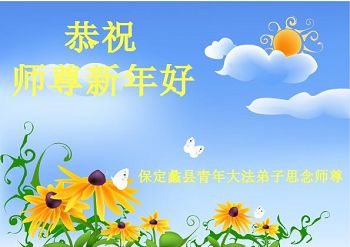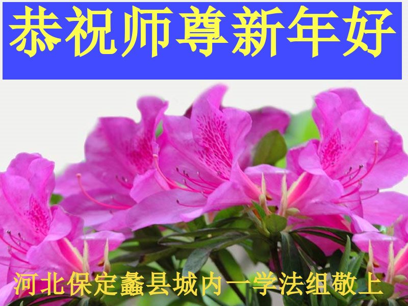 慈悲伟大的师父过年好!弟子唯有遵照师父教诲,勇猛精進,修炼如初,学好法,救度世人,才会不辜负师尊的慈悲苦度,兑现誓约,圆满随师还!全体叩拜师尊! 河北省保定全体大法弟子恭祝师尊新年快乐!