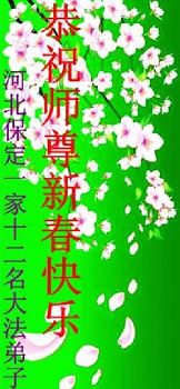 在新的一年里,多学法,学好法,转观念,向内找,修自己,保证每天坚持炼功,发正念,多救人,不辜负师尊承受的巨难延续来的时间。愿师尊多一份欣慰,少一份操劳。谢谢师尊慈悲苦度! 河北保定大法弟子一小组恭祝师父新年好!
