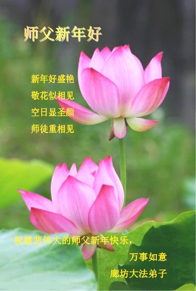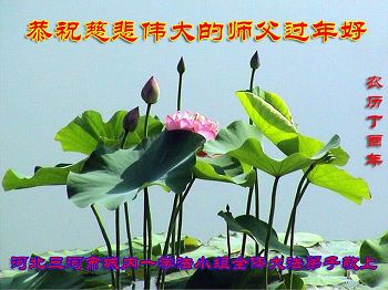 慈悲伟大的师尊:我们夫妇俩给您拜年!在新的一年里我们一定紧跟师尊,多学法,学好法,向内修,做好三件事,坚定实修,证实大法,勇猛精進直至圆满!叩拜师尊救度之恩! 河北廊坊市管道局两位老同修恭祝师尊新年好!