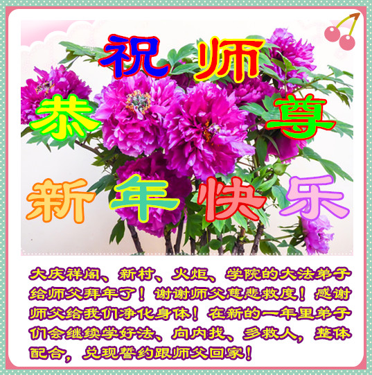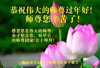 恭祝伟大的师尊过年好!!师尊您辛苦了! 感恩慈悲伟大的师尊,弟子想念您,盼早日和师尊团聚。合十叩拜! 鞍山市立山区一教师大法弟子 四川省巴中市城中学法组恭祝慈悲伟大师尊新年快乐!