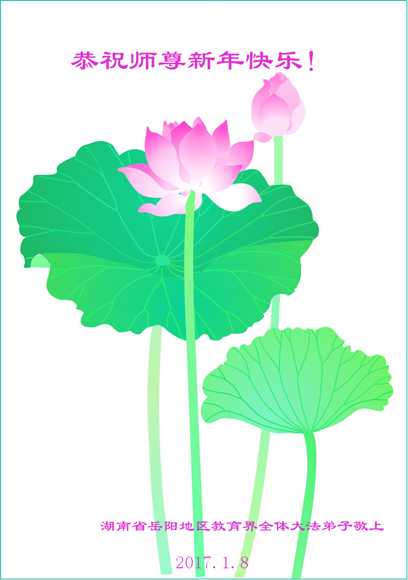 新年新气象,在2017丁酉年,弟子要勇猛精進,在神的路上奋力前行,兑现誓约。跪拜师尊!恭祝师父新年好! 湖南省岳阳地区教育界全体大法弟子恭祝慈悲伟大的师尊新年快乐!