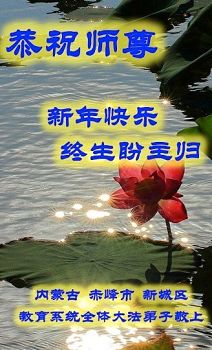 慈悲的师尊好!我们是您的家乡——长春高校一新成立的大法学法小组成员,其中既有得法20多年的老弟子,也有得法不久的新学员。在此我们叩拜师尊,给您拜年啦!在新的一年里,我们将互相帮助,形成整体,精進实修,做好三件事,早日跟随师尊回家! |