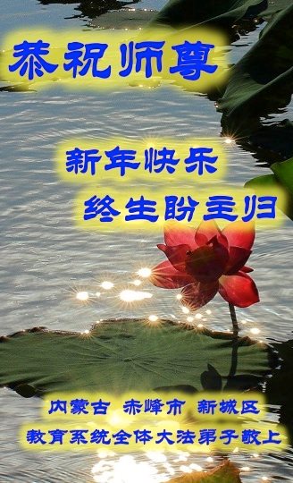 师尊您辛苦了!全体大法弟子感谢师尊的慈悲救度!我们唯有听师尊的话,做好三件事,才是师尊最高兴的、最快乐的。我们只有做好三件事才能报师恩,弟子们会努力。谢谢师尊! 内蒙古赤峰市新城区教育系统全体大法弟子恭祝师父新年快乐!终生盼主归!
