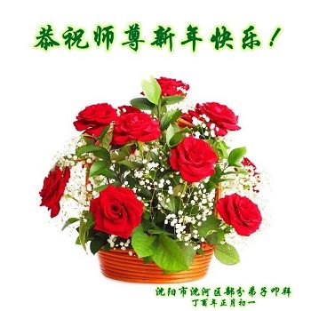 恭祝慈悲伟大的师父新年快乐!弟子们想念师尊!祈盼早日与师尊团聚!在新的一年里一定努力做好“三件事”,圆满随师还!全体弟子叩拜师尊!合十! 辽宁省沈阳大法弟子真言给师尊拜年:祝师尊鸡年快乐!