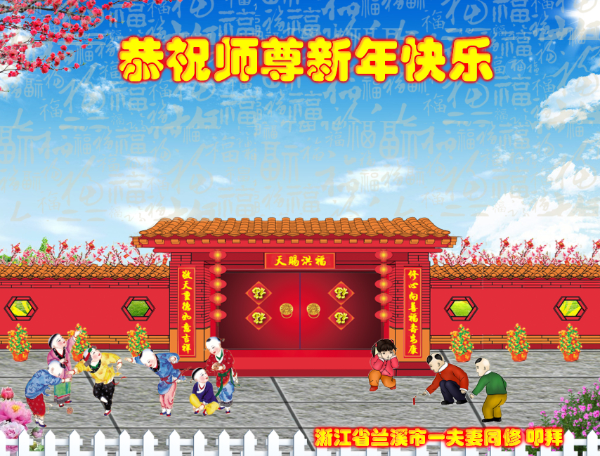 师尊过年好!弟子感恩师尊的慈悲苦度,弟子会走好以后的路。 弟子敬上 浙江省加兴市平湖市一大法弟子 浙江省宁波市二老年大法弟子恭祝师尊新年好!