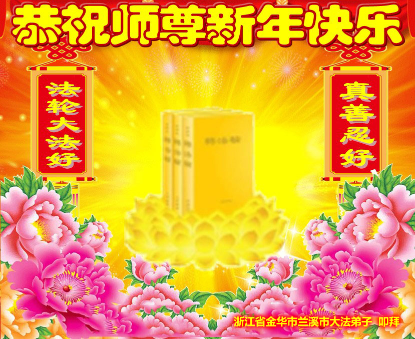 浙江省兰溪市一对夫妻同修恭祝师尊新年快乐! 浙江省金华市兰溪市大法弟子恭祝师尊新年快乐!