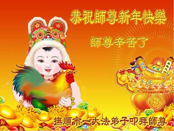 铁岭市一大法女弟子祝师父过年好,我们学法小组祝师父过年好。请师父放心,我们会努力,会救更多的众生,圆满跟师父回家。叩拜师父。 辽宁省丹东市凤城市大法弟子给师父拜年!