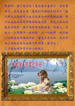 辽宁省抚顺市某学法小组大法弟子敬上 辽宁省铁岭一大法女弟子祝师父过年好!