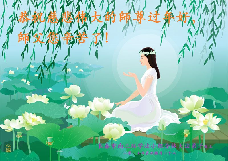 时光飞逝,转眼又一年。师尊您辛苦了!弟子们非常想念您!在过去的一年里,中共迫害法轮功的成员被逮捕法办,震慑了许多邪恶之人。历史的巨变,彰显着师尊的洪恩浩荡,映托着大法弟子助师正法的辉煌。我们今生有幸成为正法时期助师正法的大法徒,我们肩负着救度众生的使命,我们一定无愧主佛所赐大法弟子的称号。一定秉承师父的嘱托,抓紧学好法,尽最大的努力整体配合好。遇事向内找自己,紧跟正法進程,努力做到修炼如初多救人。珍惜师父用巨大的承受给弟子们延长的万古修炼机缘,不辜负师父的慈悲救度。 吉林省长春一大法弟子及全家人给师尊拜年!