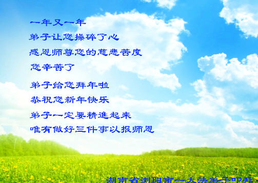 谢谢师父的慈悲苦度,弟子们唯有精進才不负师父的期望。 湖南省长沙大法弟子恭祝师尊新年快乐!
