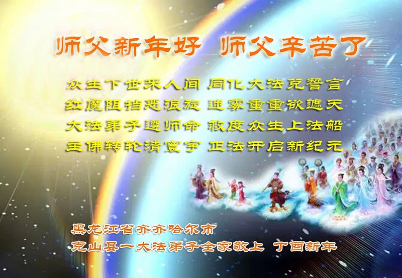 师尊您辛苦了!弟子给您拜年了!恭祝师尊新年快乐! 黑龙江省齐齐哈尔大法弟子恭祝师尊新春快乐!