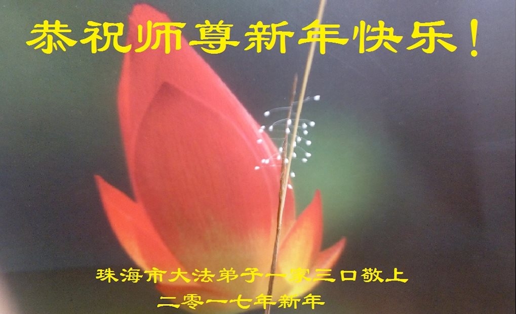广东省珠海市大法弟子一家三口恭祝师父新年快乐!
