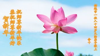 一年一度的新年又要来临之际,弟子想念师父。盼望师父早日回国,弟子悟到,唯有精進实修,多救度世人,才能报答师父的慈悲苦度之恩。 辽宁鞍山立山三个学法小组跪拜师父敬上 一学法小组大法弟子恭祝伟大的师尊新年快乐!