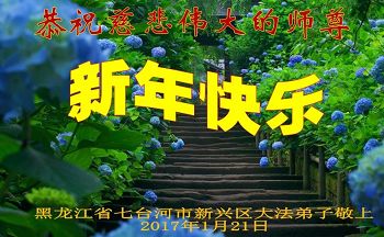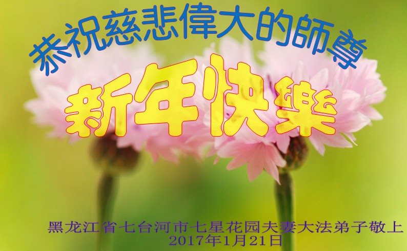 祝愿师尊新年快乐! 山东聊城一学法小组全体大法弟子敬上 黑龙江七台河市七星花园夫妻大法弟子恭祝师尊新年快乐!