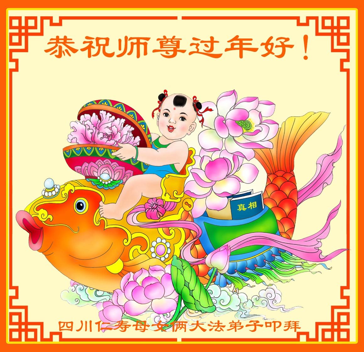 四川仁寿母女俩大法弟子恭祝师尊过年好!