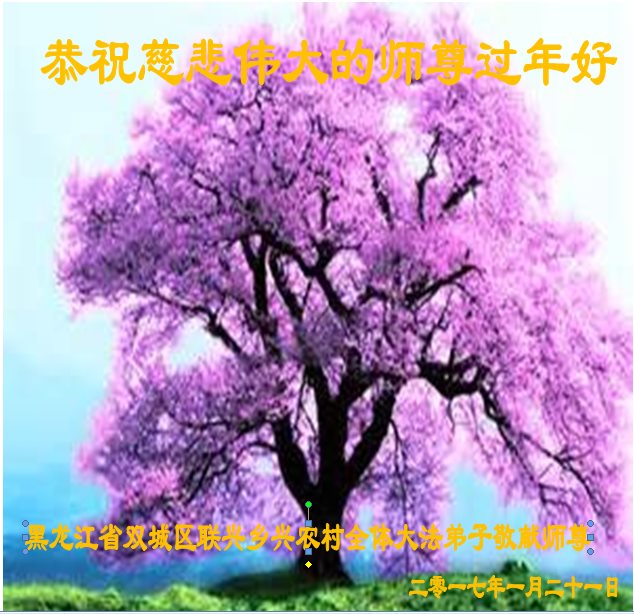 我们恭祝慈悲伟大的师尊新年快乐!师尊您辛苦了!我们努力做好三件事,不辜负师尊的期望。 广东潮州大法弟子敬贺 黑龙江省哈尔滨市双城区联兴乡大法弟子恭祝师尊过年好!