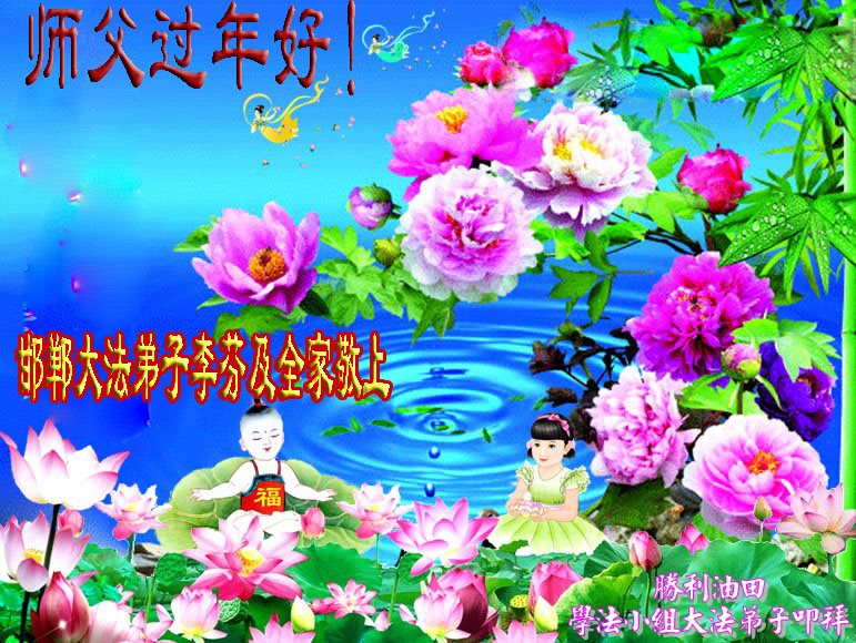 弟子想念师父!祝愿师尊新年全家快乐! 深圳大法弟子和家人敬上,合十拜谢! 河北省邯郸一学法小组大法弟子恭祝师尊过年好!