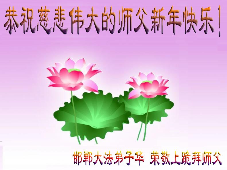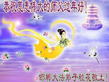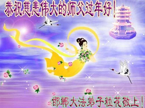 在新的一年里,我要听师尊的话,修去人心,修去一切执着心,做一个合格的大法弟子,让师尊少一份操心,多一份高兴。 河北省邯郸大法弟子恭祝师尊过年好!