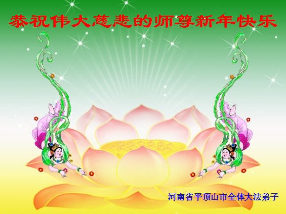 师父,新年好! 师父,辛苦了!祝愿师父新年快乐! 河南省新野县全体大法弟子向师父叩拜合十 |