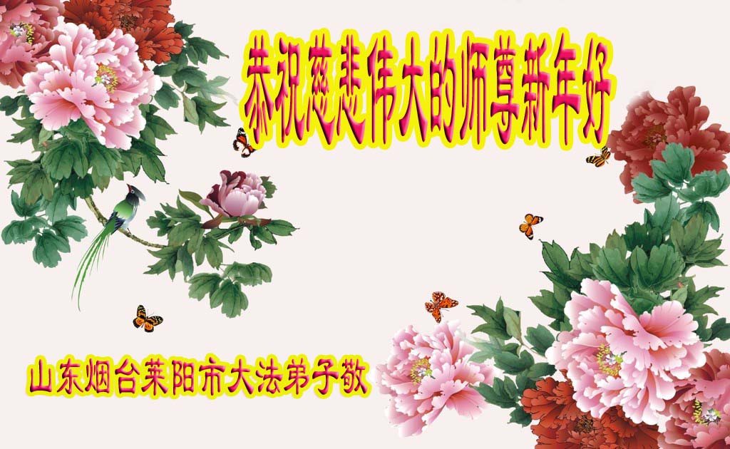 师父您好!师父辛苦了! 弟子新年拜谢师父!感恩师父对我们的慈悲苦度!师父您用巨大的承受为弟子换来宝贵的修炼时间,此生能成为您的弟子我们是何等的荣幸。我们珍惜这万古机缘,在助师正法的最后时刻,弟子认认真真静心学法,向内找,去掉人心,修好自己,扎扎实实做好三件事,多救人,兑现史前誓约。 山东烟台莱阳市大法弟子恭祝慈悲伟大的师尊新年快乐! 山东威海一学法组大法弟子叩拜慈悲伟大的师尊:师尊过年好!