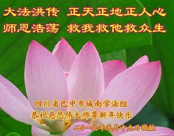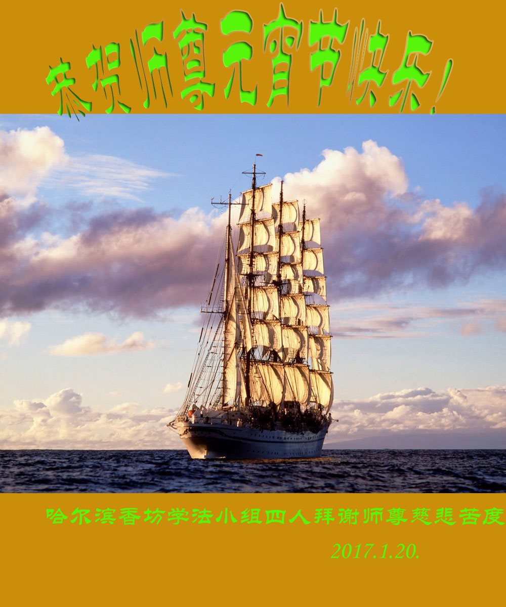信鸽高飞越大洋 快将吾心带师旁 化作微风轻轻语 师父您好新年好! 一年一度年好过 师父操劳心难过 好在人心真相明 不负师尊救度恩 四川省巴中市城南学法组恭祝师尊新年快乐!