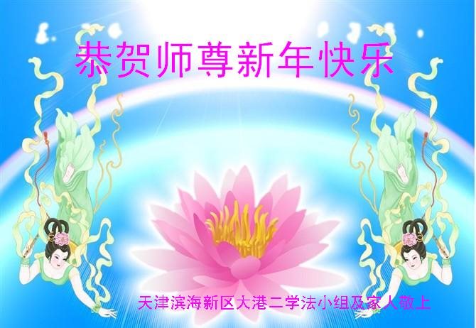 新年到了,弟子感恩师尊慈悲苦度,感谢师父对弟子的时时看护,做师父的好弟子,精進实修,紧随师父,返回家园。 天津市北辰区大法弟子与河北区大法弟子英一起恭祝伟大师尊过年好!