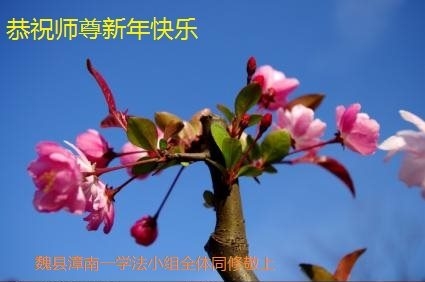弟子给师父拜年!祝愿师父心想事成,万事如意! 以前弟子修炼不够积极,对不起师父,让师父操心,以后弟子会精進实修,做好三件事,多救人,以回报师恩!请师父放心! 河南省周口市大法弟子 河南省周口一老年学法小组大法弟子恭祝师尊新年快乐!