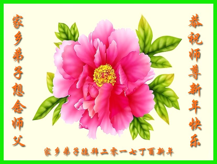 恭祝慈悲伟大的师尊新年快乐!弟子一定精進实修,做好三件事,报答师尊的慈悲救度之恩! 卜算子 感恩 日月穿梭过 转眼又一春 金鸡报晓众生醒 师父慈悲心 历尽风和雨 神州万象新 大法法光照寰宇 威德万古存 临清大法弟子全家叩拜 丙申年腊月二十二日 辽宁省大连普湾新区大法弟子恭祝伟大的师尊新年快乐!