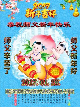 师尊辛苦了!感恩师尊给弟子给众生用承受延续来的分分秒秒。并请师尊放心,我们会在新的一年里,更加精進实修,努力做好三件事。让慈悲伟大的师尊多一些欣慰,少一些操劳。 四川省遂宁一学法组大法弟子及家人恭祝师父新年快乐!