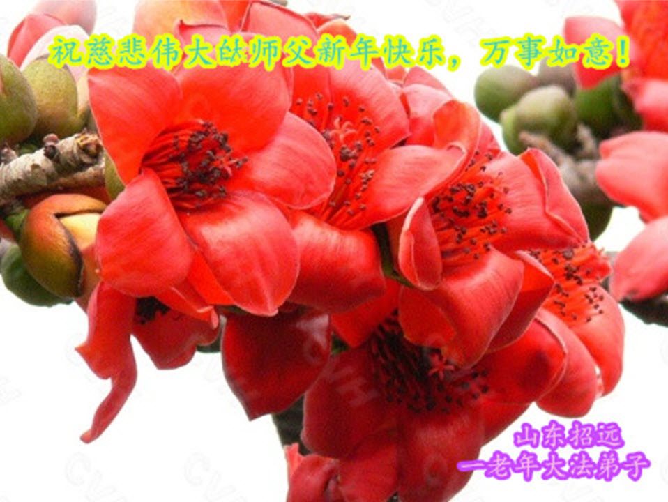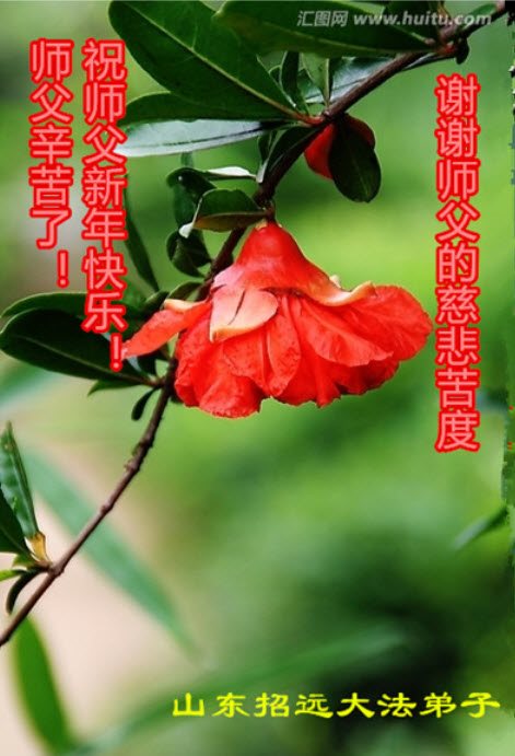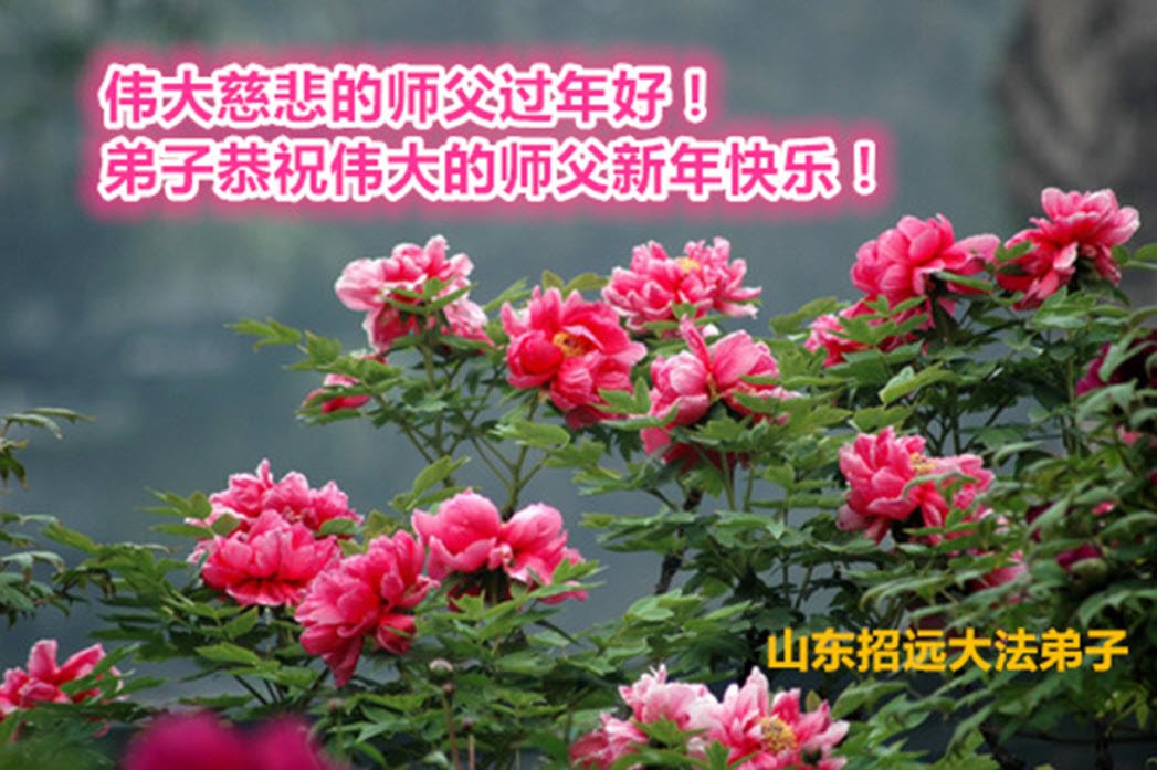 吉林白山松江河一学法小组恭祝慈悲伟大的师尊新年快乐! 跪拜师尊!合十 吉林白山北岗地区全体新老弟子恭祝慈悲伟大的师尊新年快乐! 跪拜师尊!合十 山东省烟台市招远市大法弟子恭祝伟大的师父新年快乐!