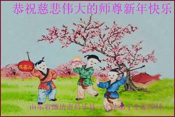 山东省潍坊市昌乐县一大法弟子全家恭祝慈悲伟大的师尊新年快乐!
