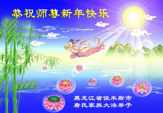 黑龙江省佳木斯市唐氏家族大法弟子恭祝师尊新年快乐!