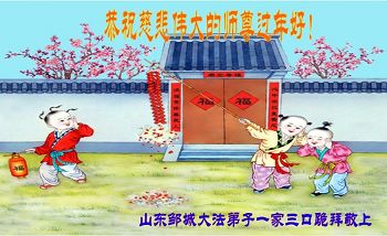 山东邹城大法弟子一家三口跪拜:恭祝慈悲伟大的师尊过年好!