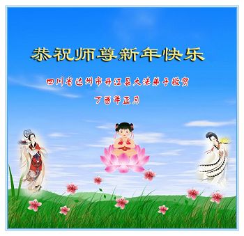 师父新年好!师父辛苦了!弟子想念师父! 在新的一年里,我们听师父的话,学好法修好自己,更好的配合,救更多的人。 大陆家庭学法小组大法弟子恭祝师父新年快乐!