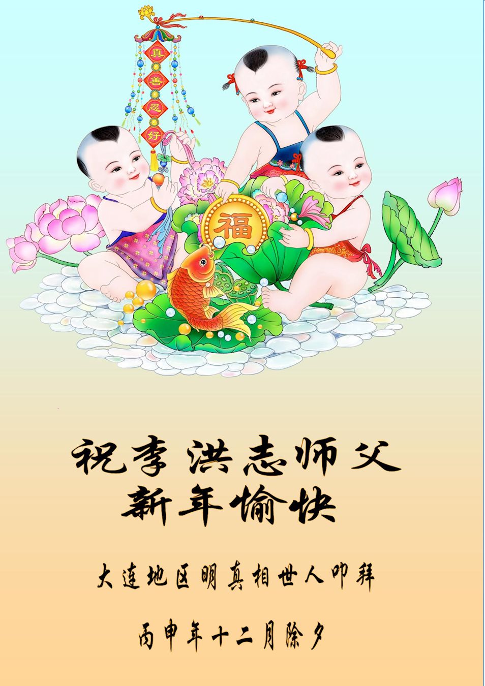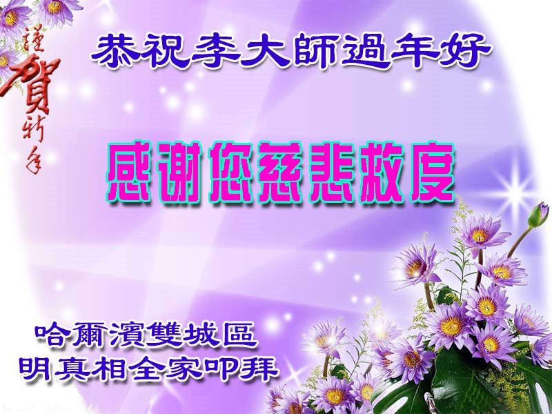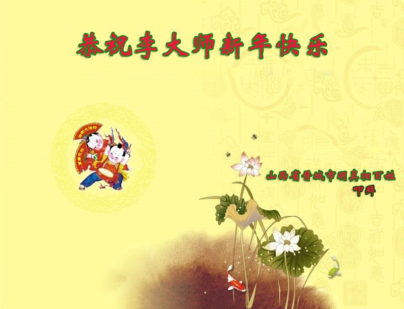 | 【明慧网二零一七年一月二十七日】来自河北平山、河北唐山、辽宁大连、湖北荆州、山东招远、吉林长春、上海、吉林辽源、四川成都、山西晋城、四川巴中、辽宁清原、广东惠州、黑龙江哈尔滨、黑龙江大庆、山东莱州等十省市十六地区的大法弟子家属及明白真相的民众恭祝李洪志大师新年快乐! 一位企业高管特意以录音形式向李大师恭贺新年。他的话也表明了中共十八年的谎言彻底破产:“我本人虽然没有修炼法轮大法,但是亲眼见证了周边的亲人们通过修炼大法带来了种种神奇的变化。” 一位河北民众表达了对李大师的感恩与崇敬:“您的弟子们广传法轮功真相,才使我们得到了您的救度。我们相信您是全球最最伟大的第一人。” 一位唐山民众简单明了的对法轮功学员表示:“我就佩服法轮功!” 河北省平山县全体明真相的老百姓给慈悲的李洪志大师拜年!慈悲的李洪志大师过年好!您的弟子们广传法轮功真相,才使我们得到了您的救度,在此向您表示衷心的感谢。我们相信您是全球最最伟大的第一人。 自古以来邪不压正!我们相信:江泽民被审判的日子马上就要来临,中共解体的日子也来到了!被中共诬陷打压十七年了的法轮功马上就要昭雪!我们最大愿望就是盼您带领神韵早日回到故国,让被中共愚弄的全国老百姓看看什么是真正的中国传统文化,让中国人早日脱离被中共奴役的苦海,真正在蓝天下自由的呼吸。让更多的世人得到大法的甘露,受益于伟大的佛法! 在丁酉新年来临之际,我们向您祝福、给您拜年! 河北省平山县全体明真相的老百姓叩拜 上海地区明真相世人恭贺李老师新年好!大陆金融科技企业上层管理人员祝李大师新春愉快! 大家好!我是中国大陆一家金融科技企业的上层管理人员,我所在的公司是这个行业的领衔冠军。我认识和了解法轮大法已超过16年了,这十多年来,虽然我本人并没有修炼法轮大法,但是亲眼见证了周边的亲人们通过修炼大法带来了种种神奇的变化。在和他们日常的生活相处当中,也感受到了他们的无私、真诚、平和、善良,也看到了一个个平凡的人因为通过修炼大法变得更加的伟大和无私。那么希望中国更多的大陆民众能够了解和认识大法的真相,能够走進大法修炼当中来。我们一起来为(扭转)社会日益低下、下滑的社会风气贡献自己的力量,也希望中国大陆能早日结束对法轮大法的迫害。那么这次中国新年来临之际,遥祝远在国外的法轮大法创始人李洪志大师新春愉快!也预祝各位观众和听众朋友们鸡年吉祥!阖家欢乐!谢谢! 唐山民众:“我就佩服法轮功!”师尊过年好!我们唐山市丰润区大法弟子想念您!祝您新年快乐!中原大地虽然阴霾笼罩,这是黎明前的黑暗。大法弟子遵照师尊的要求,讲真相,救众生,使民众看到了希望和曙光。 人们拿着漂亮的真相年历、年画、对联、福字、小册子时,喜气洋洋,非常高兴和满足。有的在人群中大声说:“法轮大法好!”“我就佩服法轮功!”很多民众看透中共本质,发出“快把江蛤蟆抓起来吧”“什么时候审判它”“我们盼着中共解体”的心声;当有人造谣抹黑时,民众敢于站在大法弟子一边正义制止;有的警察对大法弟子在集市上发真相视而不见。 看到众生的觉醒,弟子知道这是师父正法進程到了这一步,邪恶所剩无几的体现。弟子很受鼓舞,也为没得救的众生着急,我们一定不断精進,做好三件事,修好自己,救度更多众生,兑现誓约跟师回家!弟子跪敬! 梅 亿万梅花法中栽, 风霜雨雪苦里挨, 饱饮甘露师呵护, 仙枝百态凌寒开, 枝枝飘香把人救, 朵朵含笑报春来。 辽宁省大连地区明真相世人叩拜!恭祝李洪志师父过年好!湖北省荆州市公安县教育系统明真相人士及全家恭祝师父新年快乐! 感恩法轮大法师父保护我们全家平安健康,和睦幸福。山东烟台招远明真相得福报的世人恭祝大法师父过年好!我们千言万语汇成一句话:感谢大法师父的救度之恩!恭祝师父新年快乐! 湖南省怀化市靖州县明真相民众恭祝大法师父过年好!我是一位七十岁,曾经当过二十多年的老村长。一九九九年大法已开始洪传到我们这偏远的小山村,然而在电视铺天盖地污蔑法轮功的情况下,我们村便没有人敢再学。后来我有幸看过“·九·评*”了解了真相,我把明慧挂历挂在客厅最显眼的地方,很多村民还经常到我家看真相光盘。在这新旧交替,正邪大战关键的历史时刻,我们感到每一个举报江的人,是上天再一次给每一个世人再一次选择正义和生命未来的机会。现在已有几十位透彻了解真相的村民签名举报江。有的已买了电脑,我们要上明慧网了解更多真相。在新的一年,但愿更多的世人能明白大法真相,能得到大法的福佑!再一次以无比崇敬的心感恩大法师父!感恩大法!向大法师父拜年!恭祝大法师父过年好! 长春明真相世人敬祝李大师新年快乐!山东烟台招远大法弟子家属恭祝师父过年好! 感谢师父您:大法使我们家庭幸福,和睦,融洽,福报连连,谢谢伟大的师父!吉林长春大法弟子的亲属给李大师拜年!祝师父过年好!我们全家感恩您!遇到您是我们家最大的幸福,祝师父永远健康快乐! 吉林长春大法弟子家属给恩师拜年!永远支持大法!大法记在心 浩瀚宇宙太神奇, 人如流星转瞬失。 若能脱俗出苦海, 恩师传法记心怀。 法轮常在心里边, 祸去福来身康健。 家和业兴子孙满, 天伦之乐世代传。 吉林省