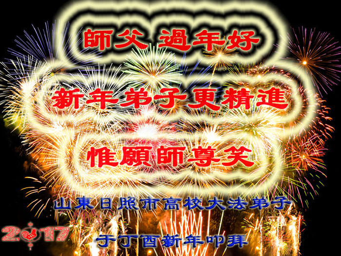 师尊:您好!是师尊不愿落下我们这些不争气的弟子,安排同修不断的给我们讲真相,帮助我们从新回到修炼的路上,我们一定不再辜负师尊的期望,精進实修,做好三件事,跟师尊回自己真正的家。感恩师尊的慈悲救度,恭祝师尊新年快乐! 山东大学大法弟子怀着无比感恩的心敬向慈悲伟大的师父拜年!