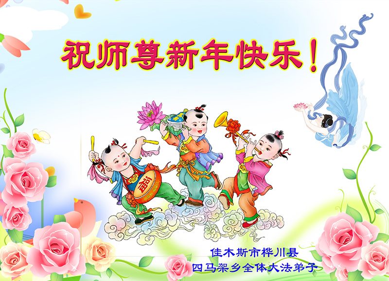 【明慧网二零一七年一月二十八日】 黑龙江省佳木斯市桦川县四马架乡全体大法弟子恭祝师尊新年快乐!
