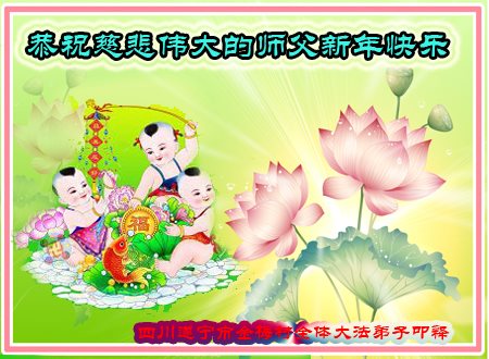 弟子代表全家及在大法中受益的亲人、朋友、同学、老师,向师父拜年!敬祝我们慈悲伟大的师父新年好!弟子一定带好家中小同修,照顾好家中老同修,在大法中精進,最近弟子总是被一种不好的物质阻碍着精進的步伐,无论怎样,弟子一定努力突破自我人的壳,走向神,不负师父厚望,精進! 四川省德阳市广汉市一学法小组全体同修向慈悲伟大的师尊拜年!尊敬的师父新年好!祝愿你新年快乐!