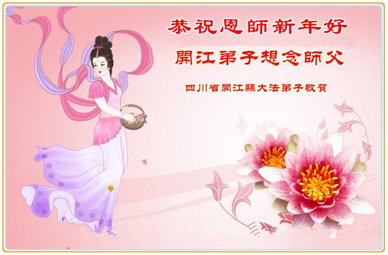 四川省遂宁涪江学法小组全体学员恭祝师父新年快乐!