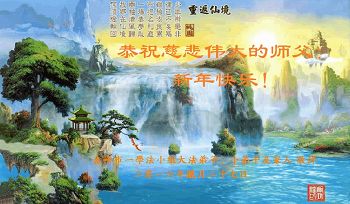 师父,过年好! 千言万语说不尽对大法师父的感恩,千年不遇、万年不遇的万古机缘是师父赐予的,我们不能辜负师父对我们的慈悲苦度,我们一定要修好,做好三件事,多救人,兑现跟师父签的誓约。 在新年到来之际,弟子叩拜师父,恭祝慈悲伟大的师父新年快乐! 赤峰市一学法小组大法弟子、小弟子及家人敬拜 陕西省汉中市大法小弟子慧慧敬祝师尊新年快乐!