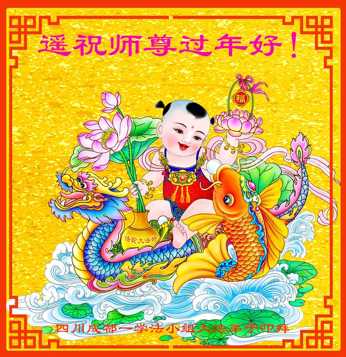 四川成都一学法小组全体大法弟子向慈悲伟大的师尊拜年:师尊您好!过年好!恭祝师尊新年快乐!