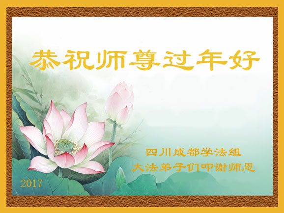 【明慧网二零一七年一月二十八日】 四川成都市大法弟子全家恭祝师尊新年快乐!