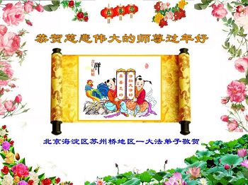 在过去的一年中,是您一路看护我们;是您一次次唤醒我们;是您一回回点化我们;是您一天天鼓励我们……惟愿师尊笑!再次叩谢师恩! 北京海淀区苏州桥一个大法弟子恭祝伟大慈悲的师尊过年好!