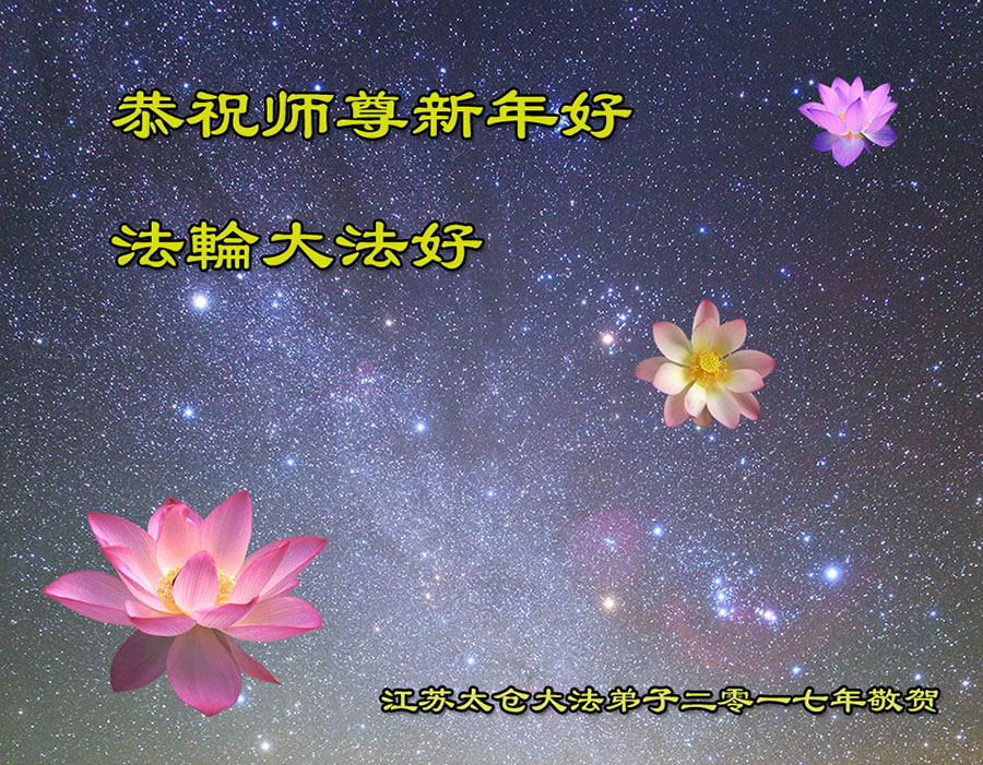 我们一定多学法,听师父的话,去执着,多救人,圆满随师还。 江苏省苏州市常熟市大法弟子叩拜恭祝师尊新年快乐!