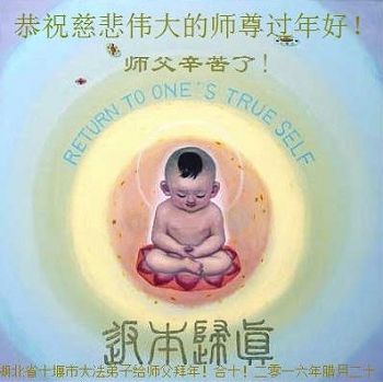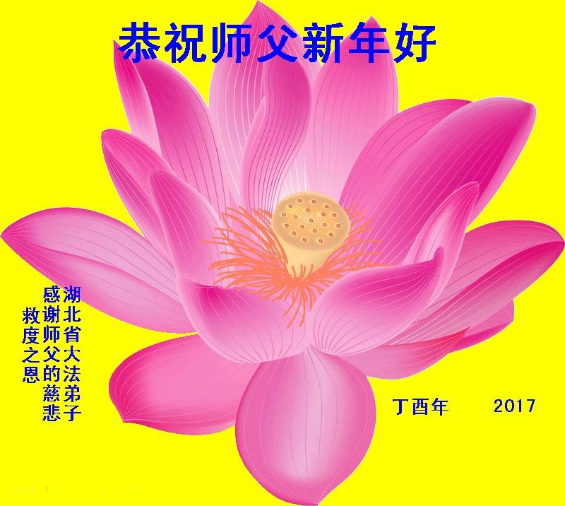 【明慧网二零一七年一月二十八日】 湖北省十堰市大法弟子恭祝慈悲伟大的师尊新年好!弟子跪谢师尊救度洪恩!合十!