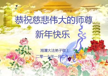 弟子是2013年年底得法的弟子,2015年我的儿子也得法了,但是我们离师父要求的三件事还差的很远,悟性也差,有时明明知道是过关,可就是守不住心性,但是这颗坚定跟师父走的决心是谁也撼动不了的。弟子真心希望能够精進、精進、再精進,让师父少一分操心多一分欣慰。在这新年到来的时候也送上自己的一份真心祝愿:恭祝尊敬的师尊新年快乐,师父您辛苦了! 湖南省湘潭大法弟子全家恭祝慈悲伟大的师尊新年快乐!
