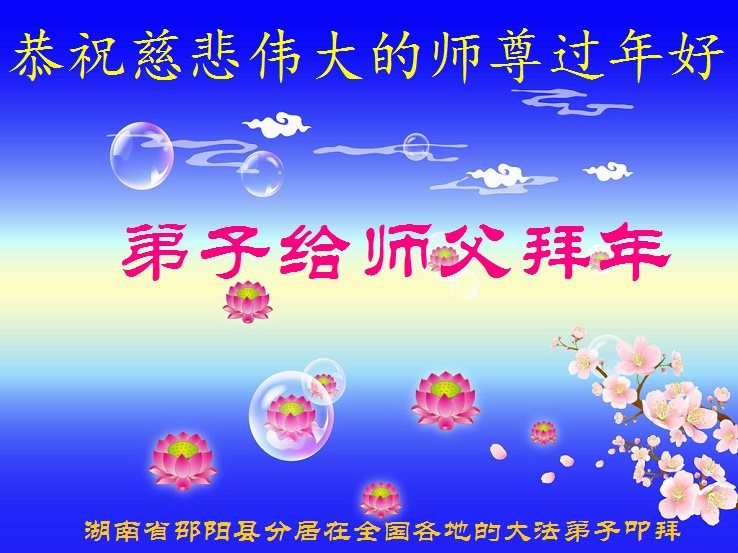 湖南邵阳县全体大法弟子给师尊拜年!叩拜慈悲伟大的师尊,恭祝师尊新年好! 湖南怀化大法弟子及家人恭祝慈悲伟大的师父新年快乐!