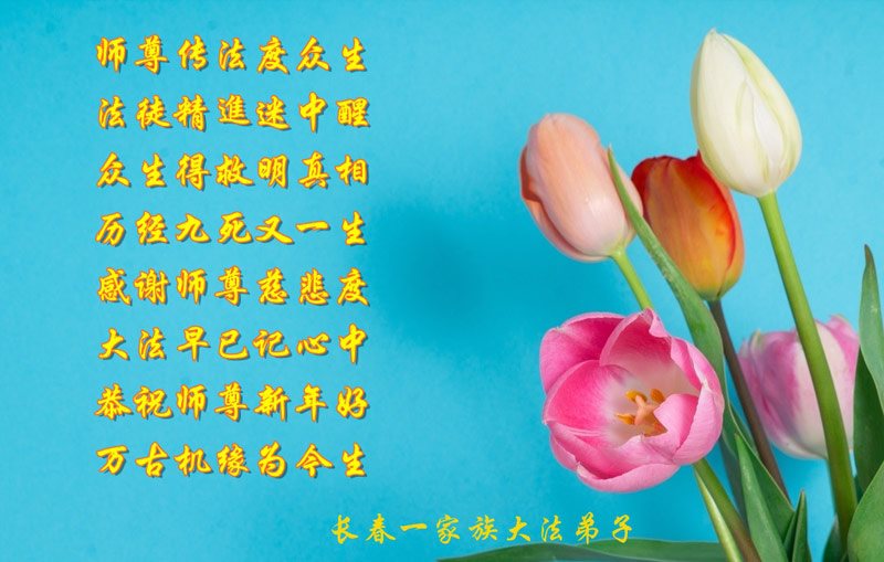 每逢佳节倍思恩 叩拜师尊过年好 大法光辉普天照 师尊救度世中人 天罗地网灭邪妖 二十五载承巨难 愿盼师尊开心笑 倾尽一切时至今 师尊慈悲延时间 为救迷中更多人 助师奋力世间行 正念正行再精進 大法弟子敬上 吉林省长春大法弟子恭祝慈悲伟大的恩师过年好!