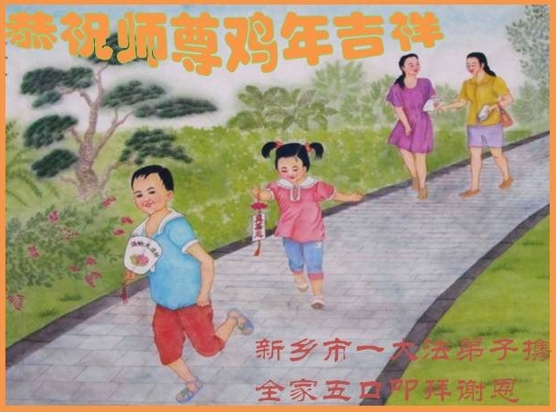 【明慧网二零一七年一月二十八日】 河南省新乡一大法弟子携全家五口恭祝师尊鸡年快乐!