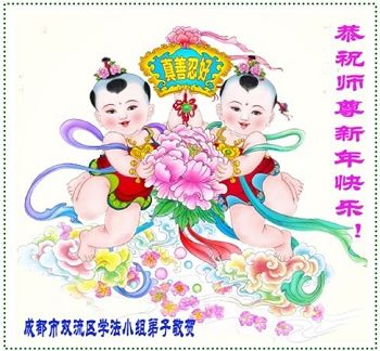师尊: 弟子跪拜师尊!恭祝师尊过年好! 弟子回顾过去十几年的修炼,很多时候都不在修炼状态中,不会修,回想起来很是懊悔。在大法弟子应该唱主角的时候,我们却在坐观天象的变化,等靠师父。 特别诉江后,我们坐观常人形势变化,甚至依赖常人。师尊告诉我们“天象变化下面要是没有人去动,还不能给常人社会带来一种状态,也就不称其为天象的变化了。”(《转法轮》)弟子今天才悟到:大法弟子才是结束这场迫害的主体。我们应该站在主角的位置上,静心学法,修好自己;改变以往那种怕被迫害而发正念的被动状态,摆正在正法舞台上敢于去唱主角的基点,清除邪恶,救度众生;配合天象,主动出击,一鼓作气,解体最后的邪恶,完成使命,随师还! 再次跪拜师尊!恭祝师尊过年好! 合十 威海市环翠区一学法组十七位大法学员 敬上 四川省成都夫妻俩弟子祝师尊新年好!